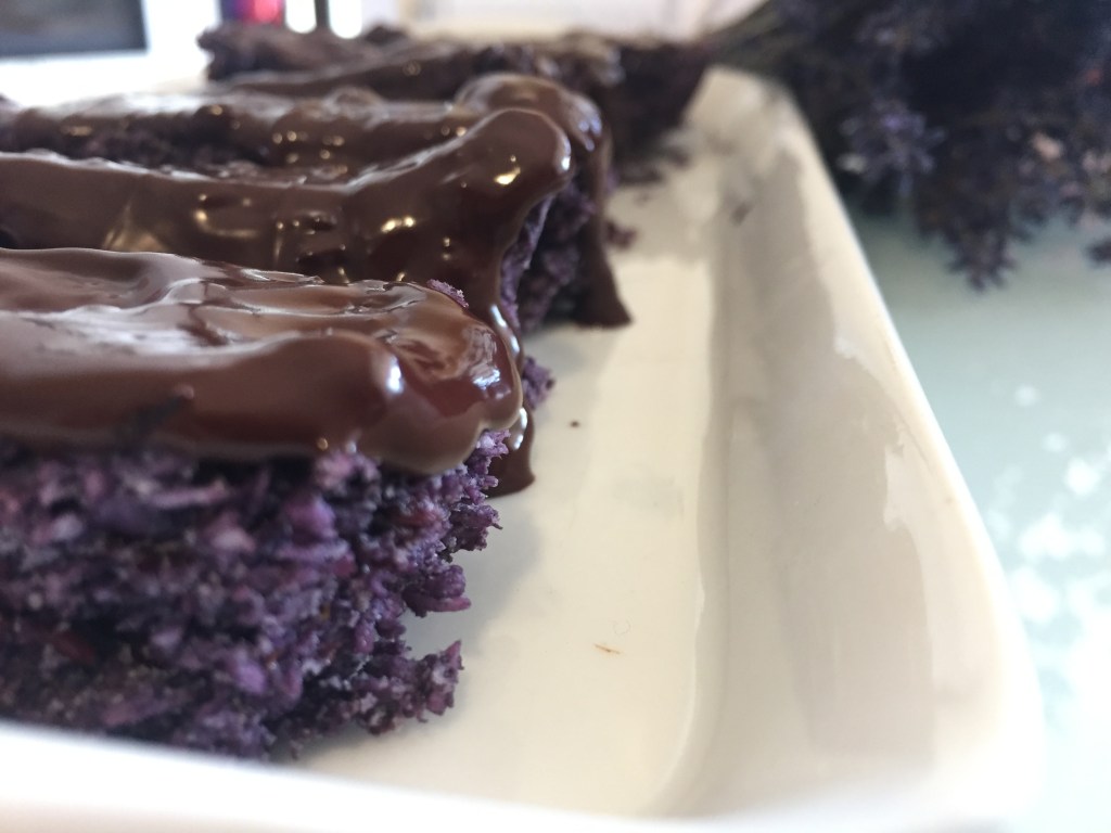 Am topit cicocolata și am tăiat compoziția în bucăți .