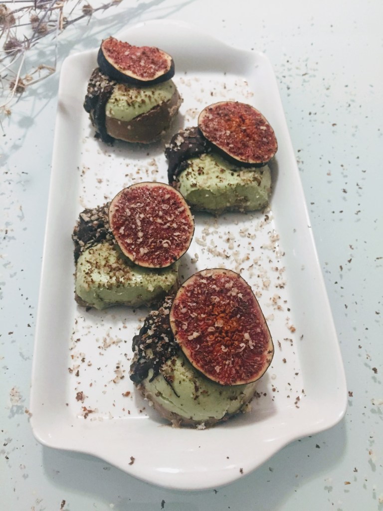 Nuca , ciocolata neagră și smochinele au fost decorul acestui desert .