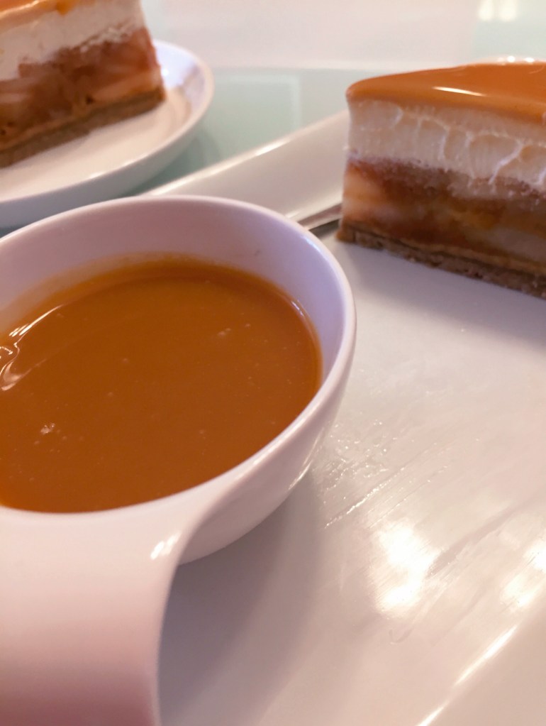 Am turnat această cremă peste merele din congelator și l-am introdus la frigider până am pregătit sosul de caramel .